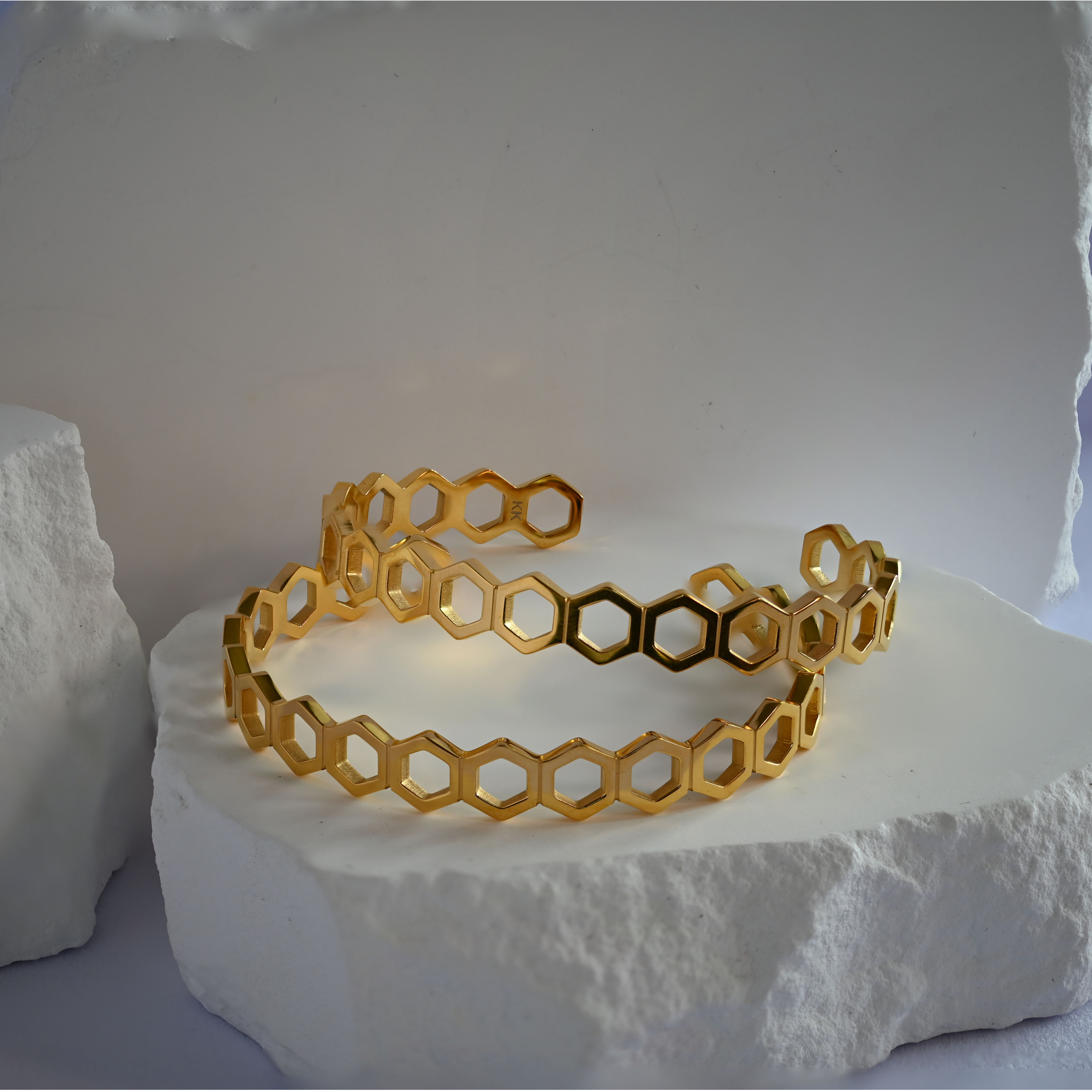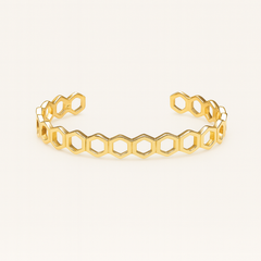 Discover the elegance of our honeycomb style bangle, where modern geometry meets timeless beauty. Inspired by nature's masterpiece, this bangle features a stunning hexagonal pattern that symbolizes harmony and strength. Its sleek design adds a touch of sophistication to any outfit, making it the perfect accessory for both everyday wear and special occasions.