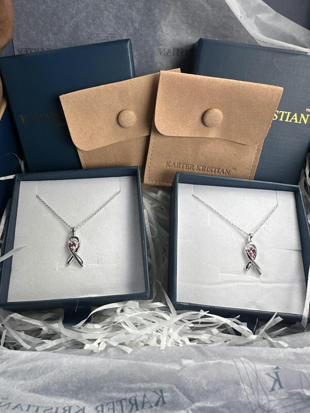 Karter Kristian 925 Silver Breast Cancer Awareness Pendant with 0.5ct Pink Moissanite