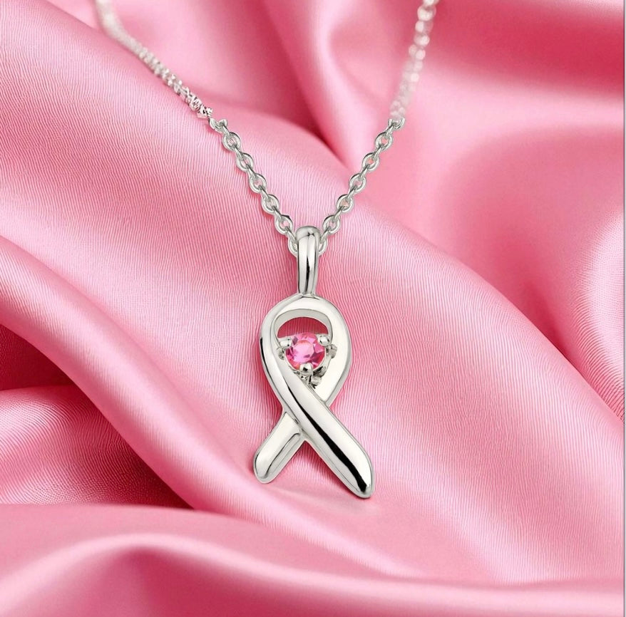 Show your strength and support with this stunning breast cancer awareness ribbon pendant. Handcrafted in 925 solid sterling silver, it features a sparkling 0.5 carat pink moissanite stone at its center, symbolizing love, hope, and resilience. A meaningful gift for survivors, supporters, or anyone wanting to honor the fight against breast cancer.